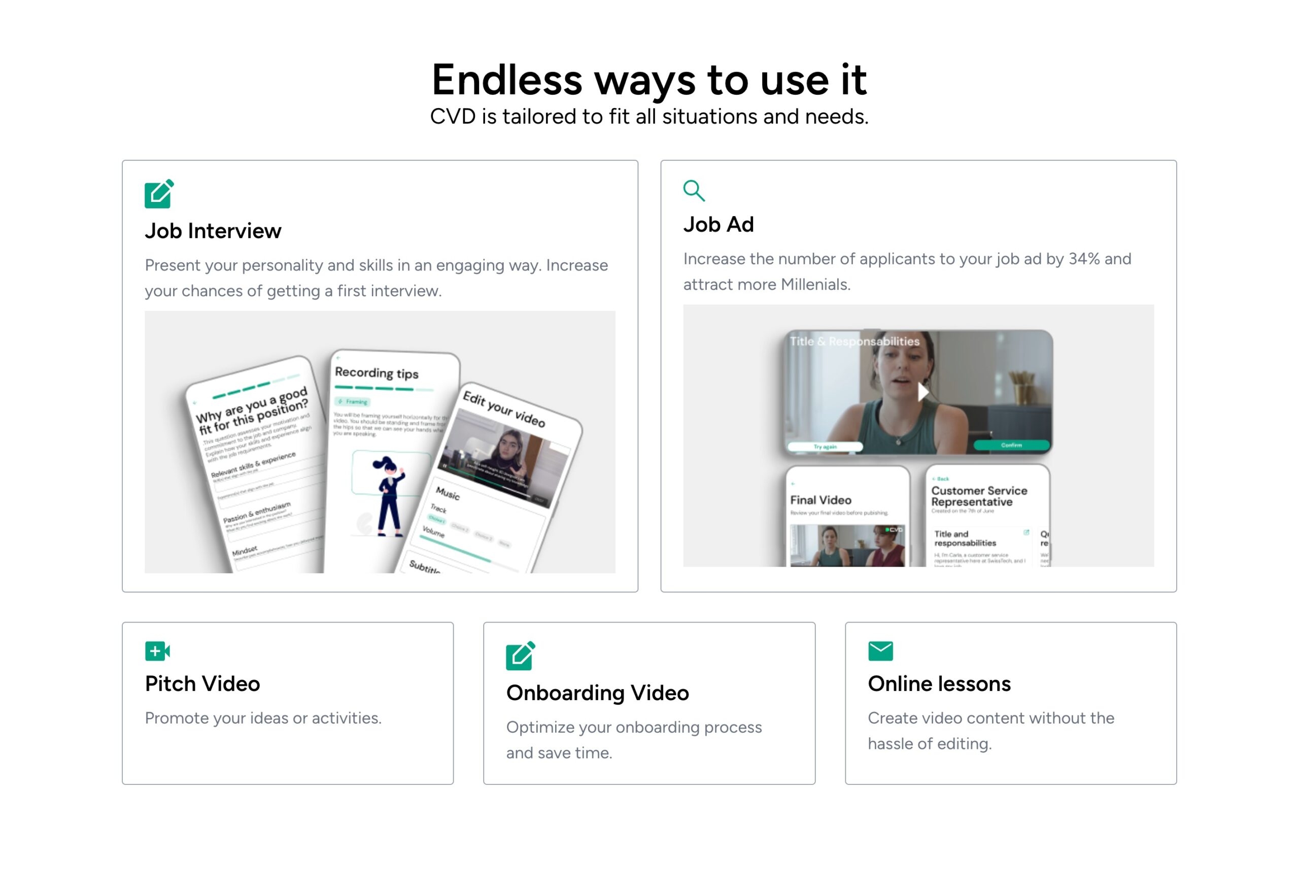 CVD is an innovative mobile app currently available on the iOS App Store, designed to allow job seekers to efficiently produce professional video CVs, significantly enhancing their chances of landing a job by providing a more dynamic and personal representation of their skills and experience. By incorporating video CVs in the recruitment process, employers can accelerate the process of finding the right candidate in a fraction of the usual time. The company behind CVD, Communication Open, is based in Switzerland and was founded by two visionaries, Emmanuel Bichet and Elodie Anglade.