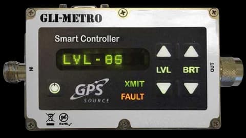The METRO is a primary signal controller for GPS retransmission. It is an L1 or L1/L2 smart amplifier, designed for all applications that provides a calibrated 1dBm incremental output power control. When used in conjunction with an active GPS receive antenna, it will retransmit GPS signals inside a building, hangar or any structure where GPS is not available. It can be used in an automated test environment or in a shielded room that needs L1 or L1/L2 signal. A user can easily use a push-button control to precisely determine the output power of the METRO signal. This reduces the need for multiple antennas, and multiple antenna cable runs, while lowering maintenance and installation costs.