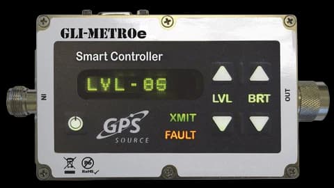 The METROe is a primary signal controller for GPS retransmission. It is an L1 or L1/L2 smart amplifier, designed for all applications that provides a calibrated 1dBm incremental output power control. When used in conjunction with an active GPS receive antenna, it will retransmit GPS signals inside a building, hangar or any structure where GPS is not available. It can be used in an automated test environment or in a shielded room that needs L1 or L1/L2 signal. A user can easily use a push-button control to precisely determine the output power of the METROe signal. This reduces the need for multiple antennas, and multiple antenna cable runs, while lowering maintenance and installation costs.